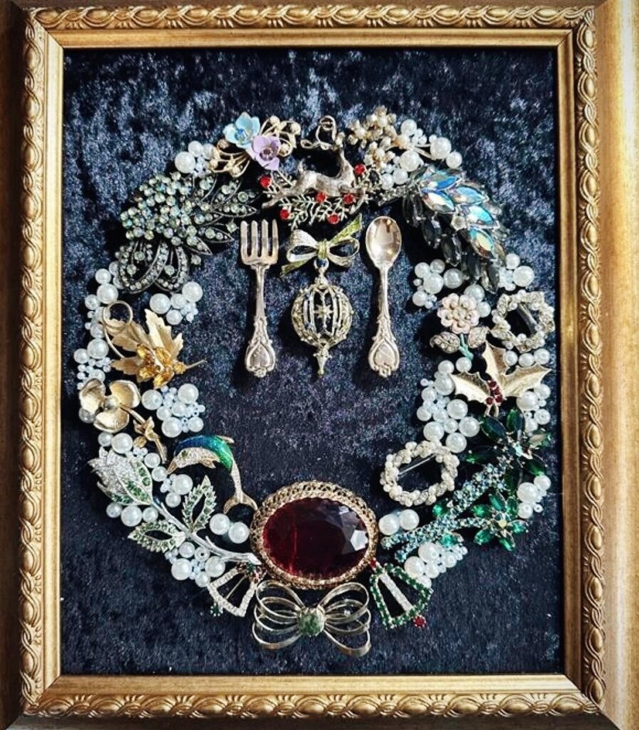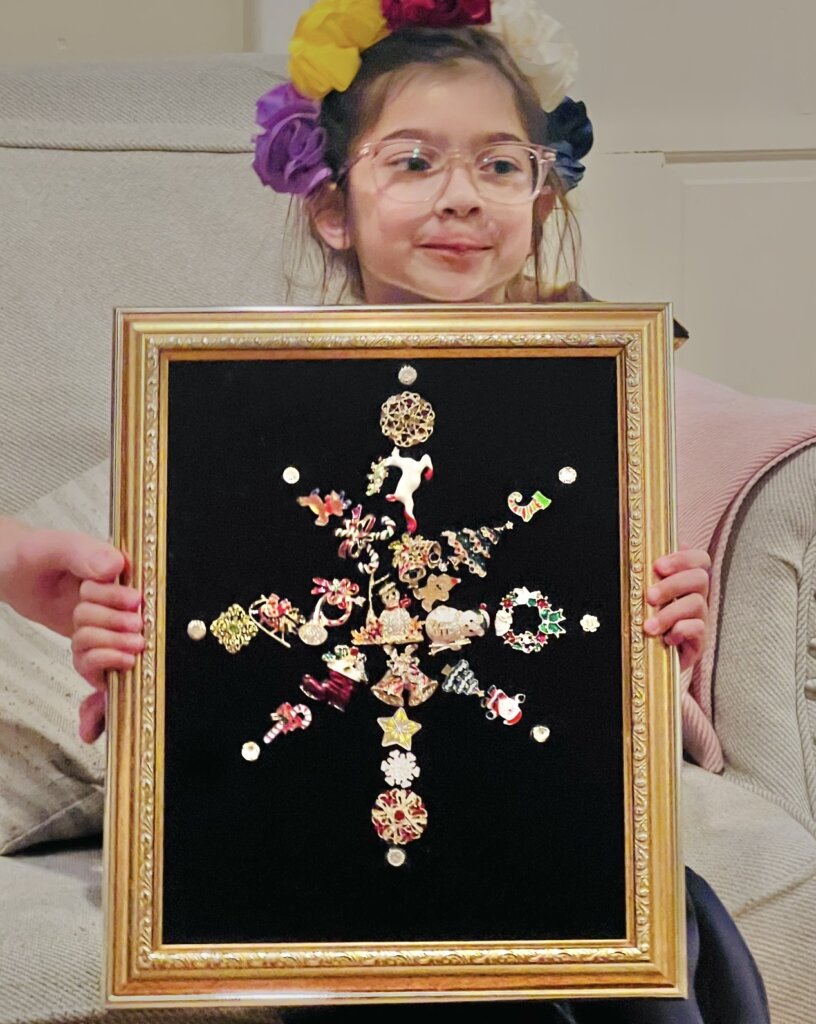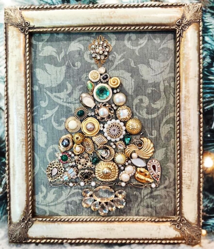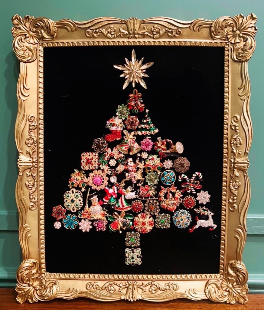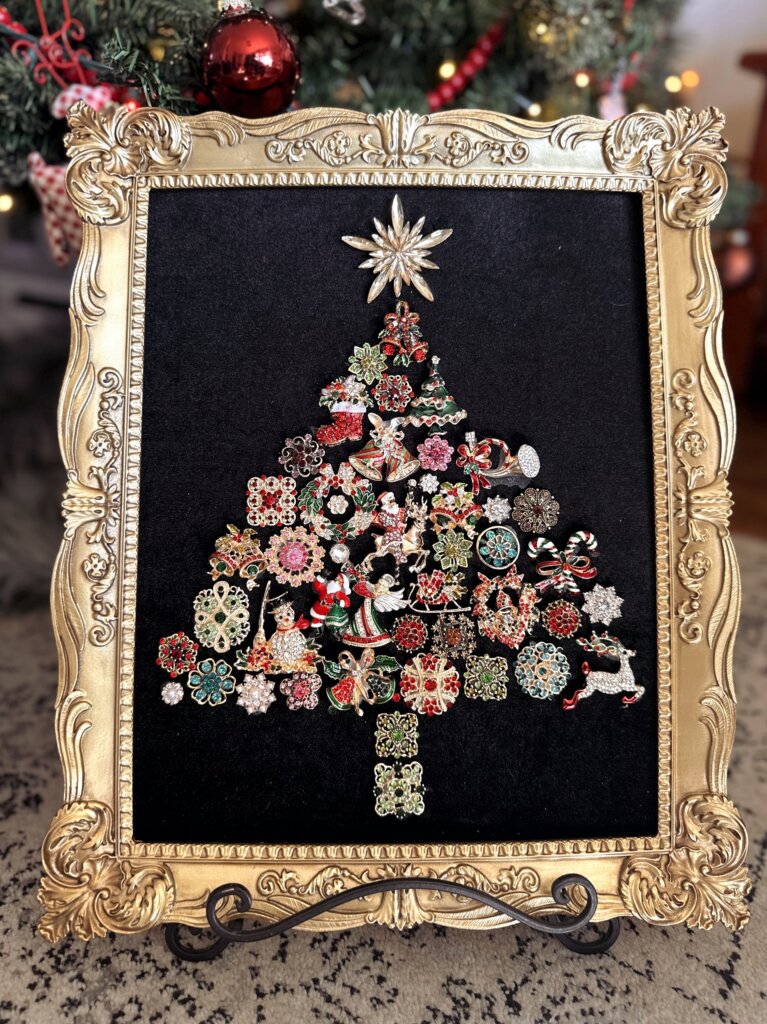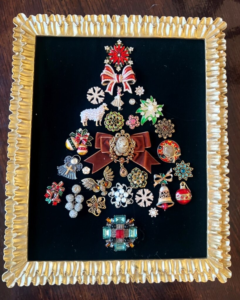 I first saw this beautiful brooch tree on my sister-in-law’s wall a couple of years and loved it so much I was determined to make one. She purchased her brooches and pins at an antique fair in Texas and had wonderful unique pins to work with. Some of you may have some of these passed down from grandma’s and aunties. If so, lucky you! It’s worth scouting around at local thrift shops and you might find some sold in bulk.