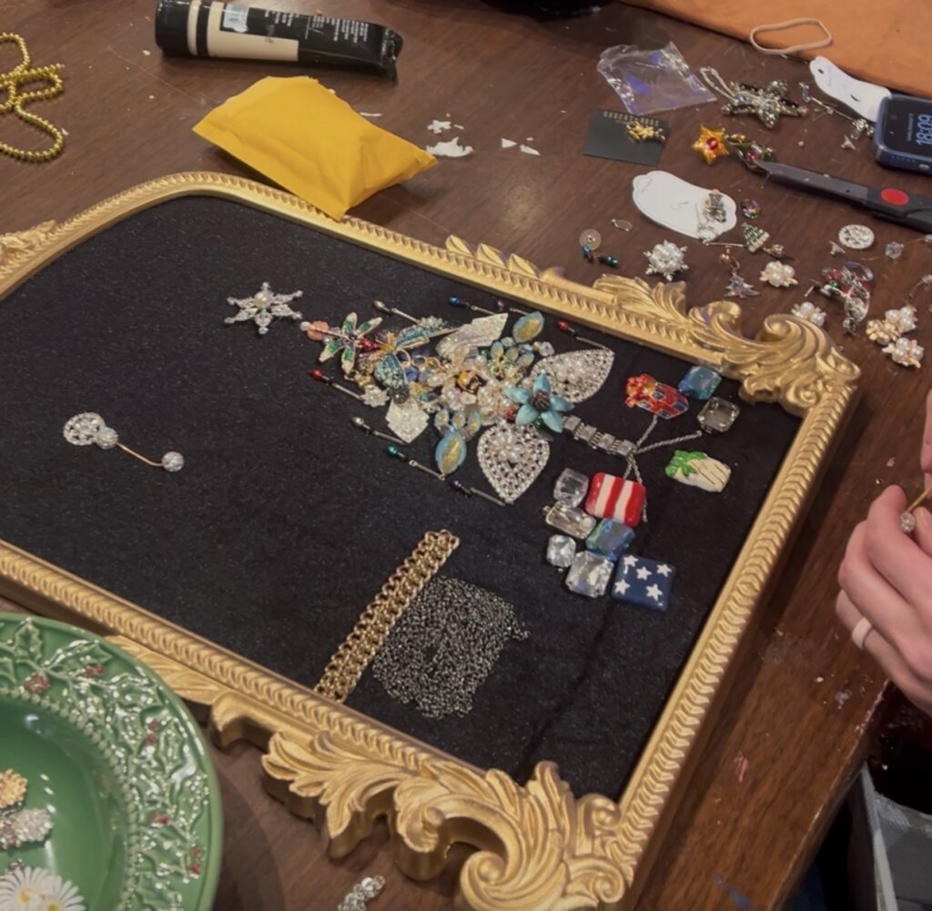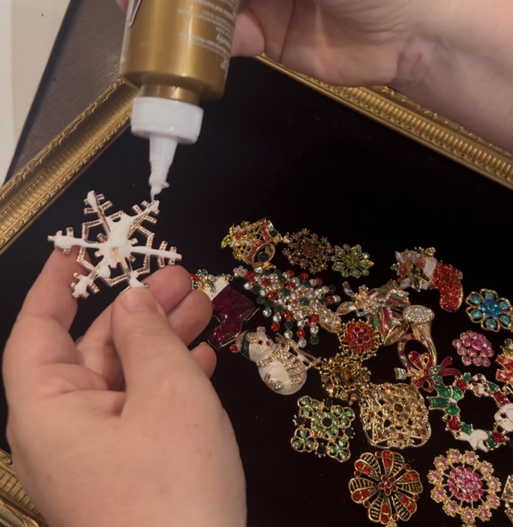 Start by using a wire cutter to cut all the backs off the pins/brooches. This is easier than you think so don’t worry.