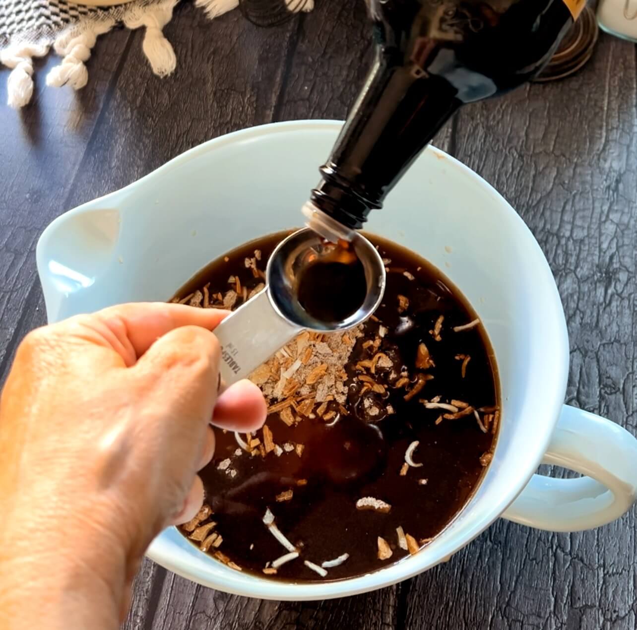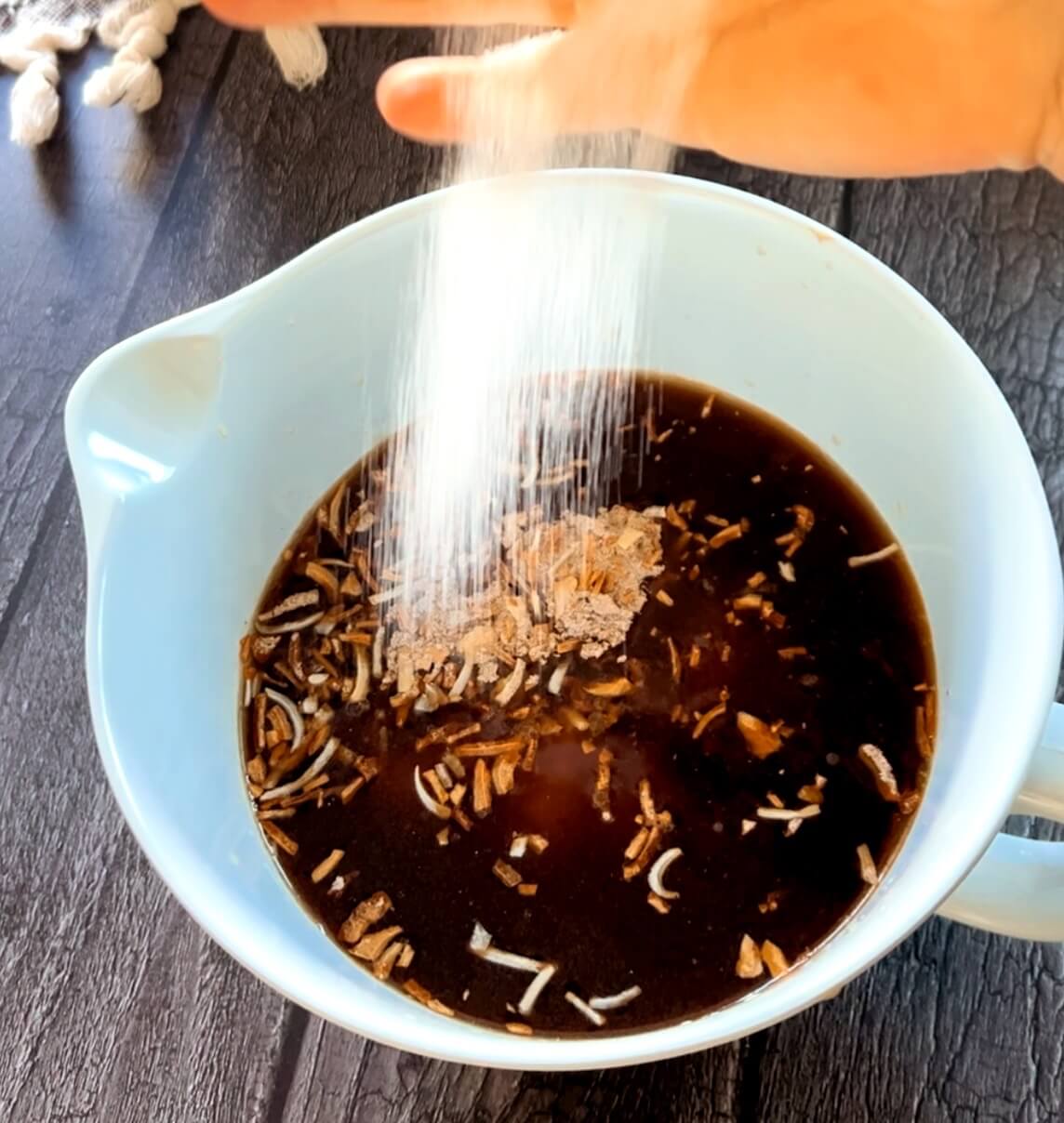 Add some Worcestershire Sauce and salt and whisk it altogether.
