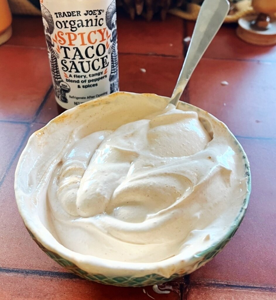 - Mix the sour cream & taco sauce. Salt and pepper to taste. Set aside.