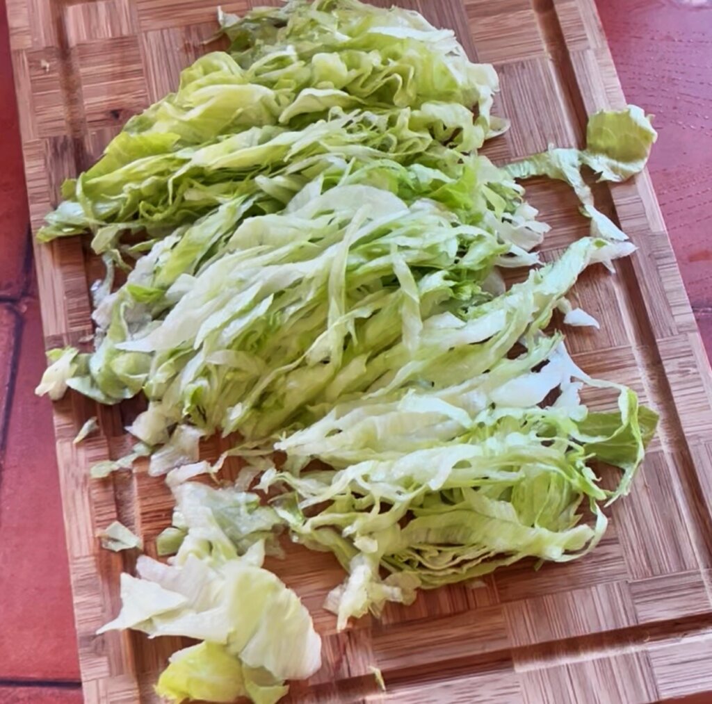 - 2 cups ice berg lettuce, cleaned and thinly shredded