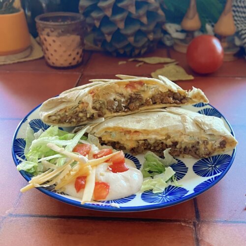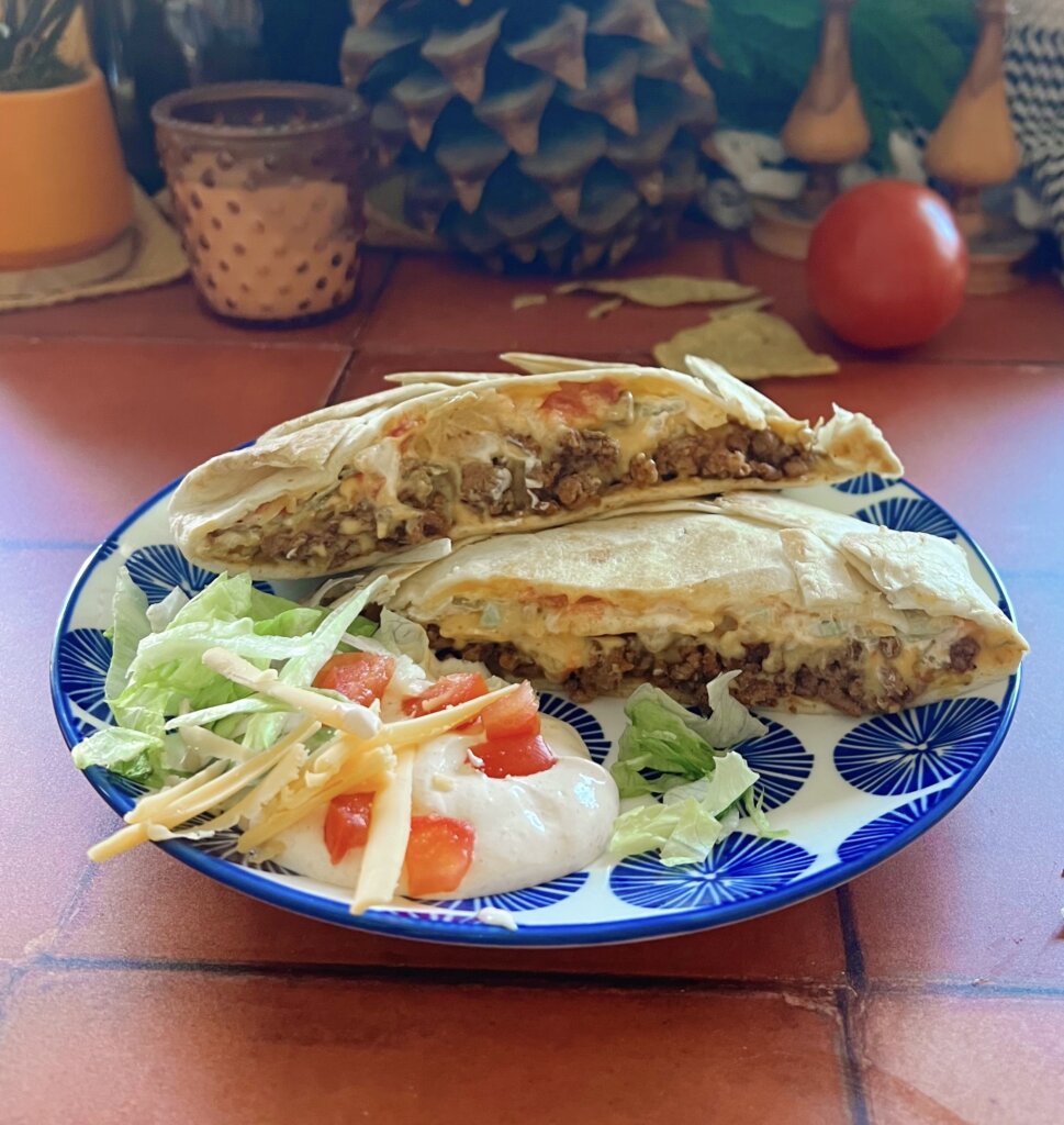 - Cut in half and serve with leftover spicy sour cream and queso.ENJOY