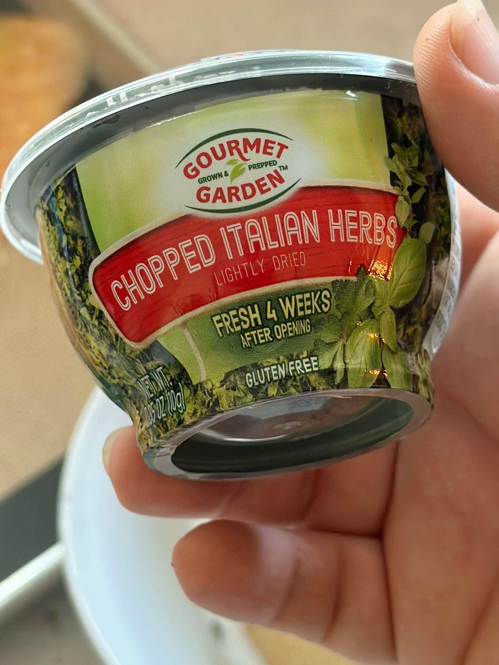 For convenience, we LOVE these freeze dried herbs you can find in the produce section next to the fresh herbs. We try to keep the Italian herb blend on hand because it is SO convenient to have them ready to toss into any recipe.