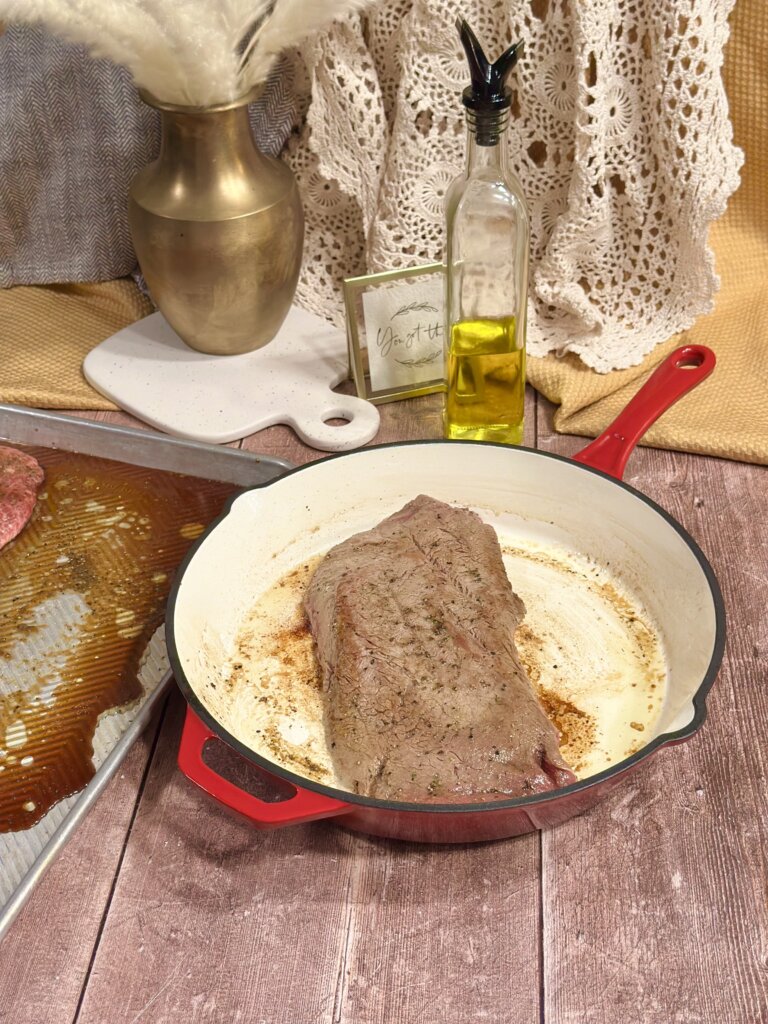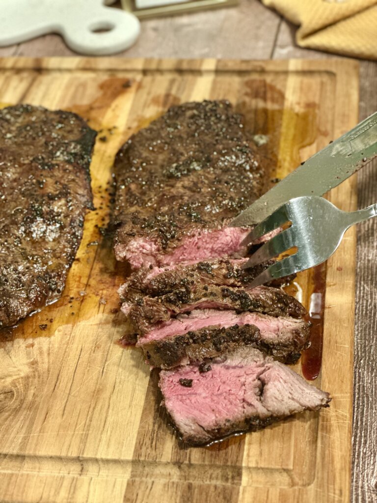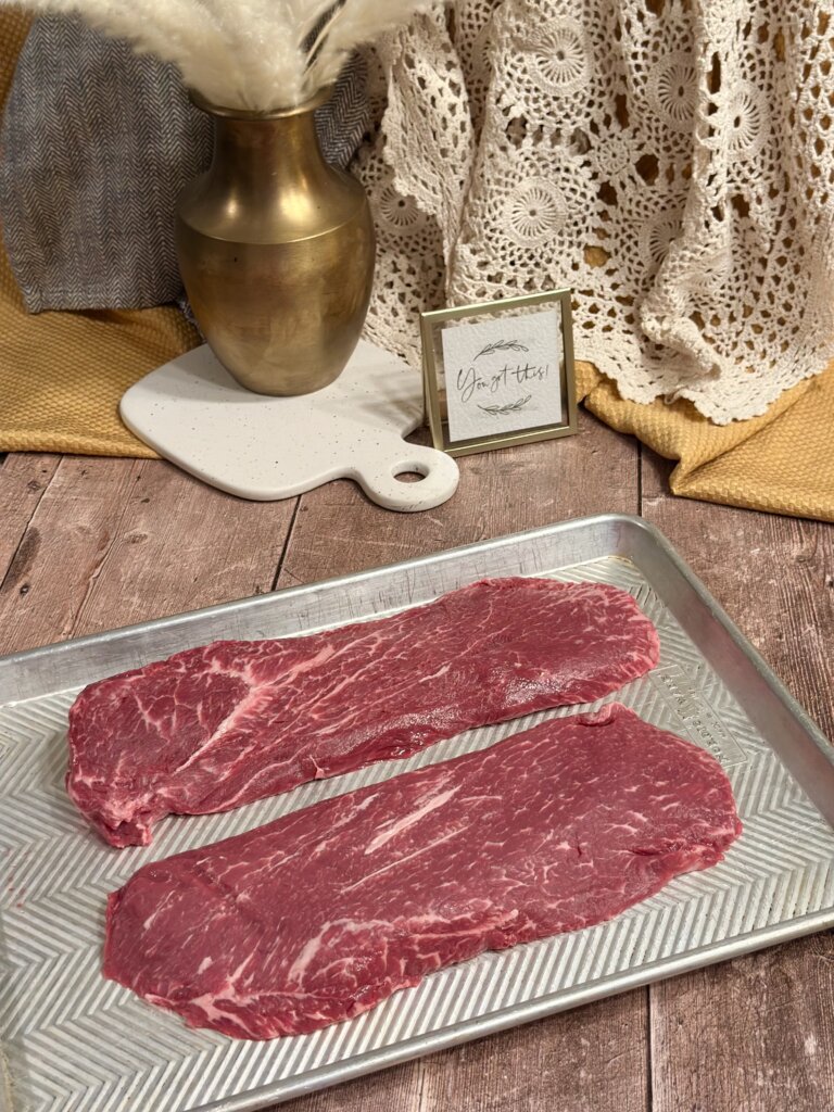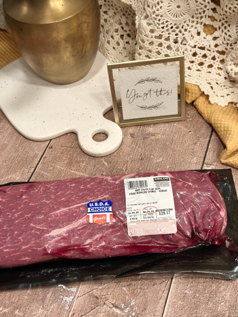 I had NEVER done a Flat Iron Steak. It was significantly cheaper! I decided to try it. We’ve now gone back and done Flat Iron Steaks THREE times since because they are so tender, delicious and easy to prepare. We are now huge fans!