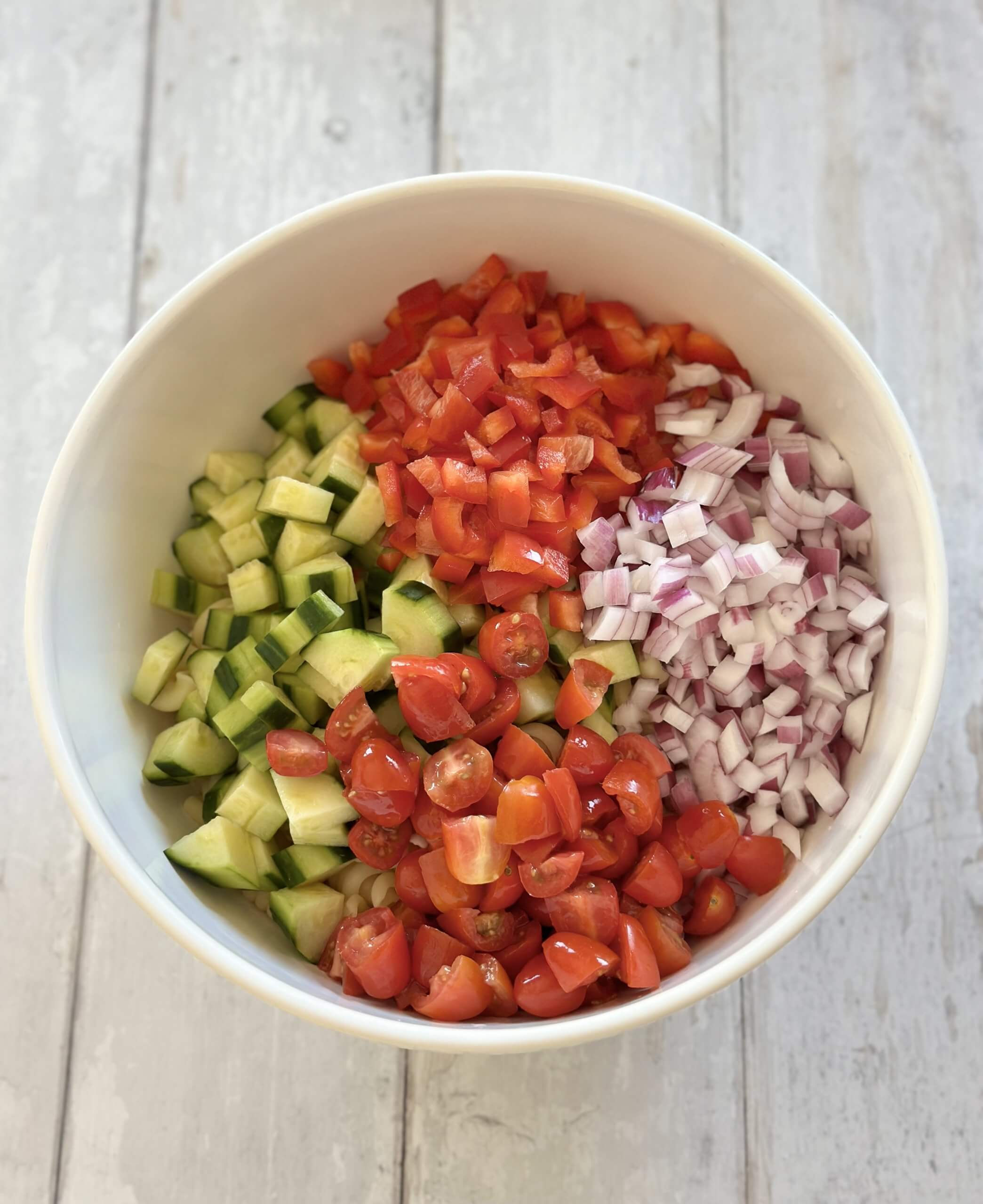 A hearty and delicious pasta salad with all the Greek flavors that you love. Add Grilled chicken if you wish, or serve on the side of Greek Chicken or on a buffet with Mediterranean Bowls.