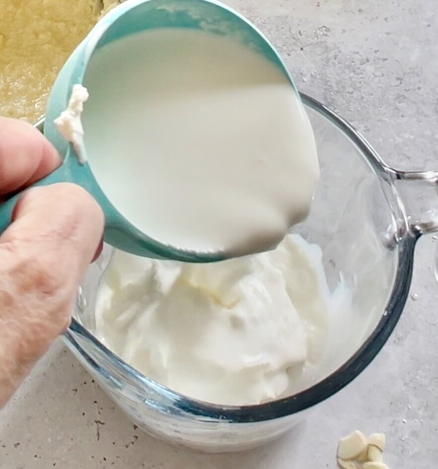 - Whisk the milk & ricotta together in a bowl and set aside.