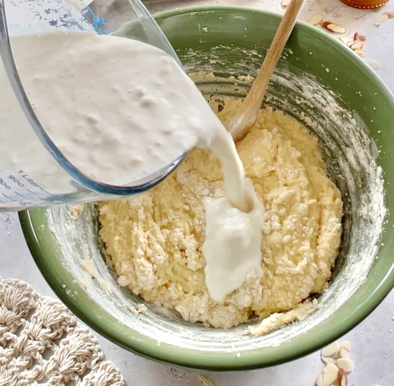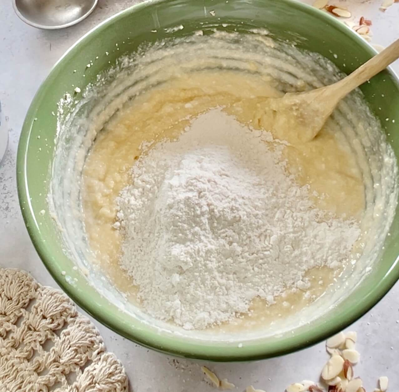 - Add the remaining flour mixture and stir until just mixed.