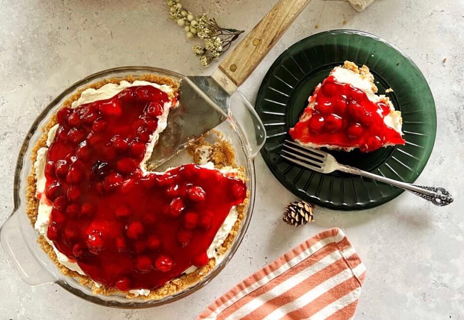 This Cherry Cheese Pie is an oldie, but a goodie. You may have had this one. Maybe your mom or grandma used to make it. My mom’s friend made it for Thanksgiving my senior year of high school and that was the first time I had it. It is a fast and easy pie good in a graham cracker or pastry crust. Someone might bring a cherry pie to your Pi party, but this one is more unlikely to show up.