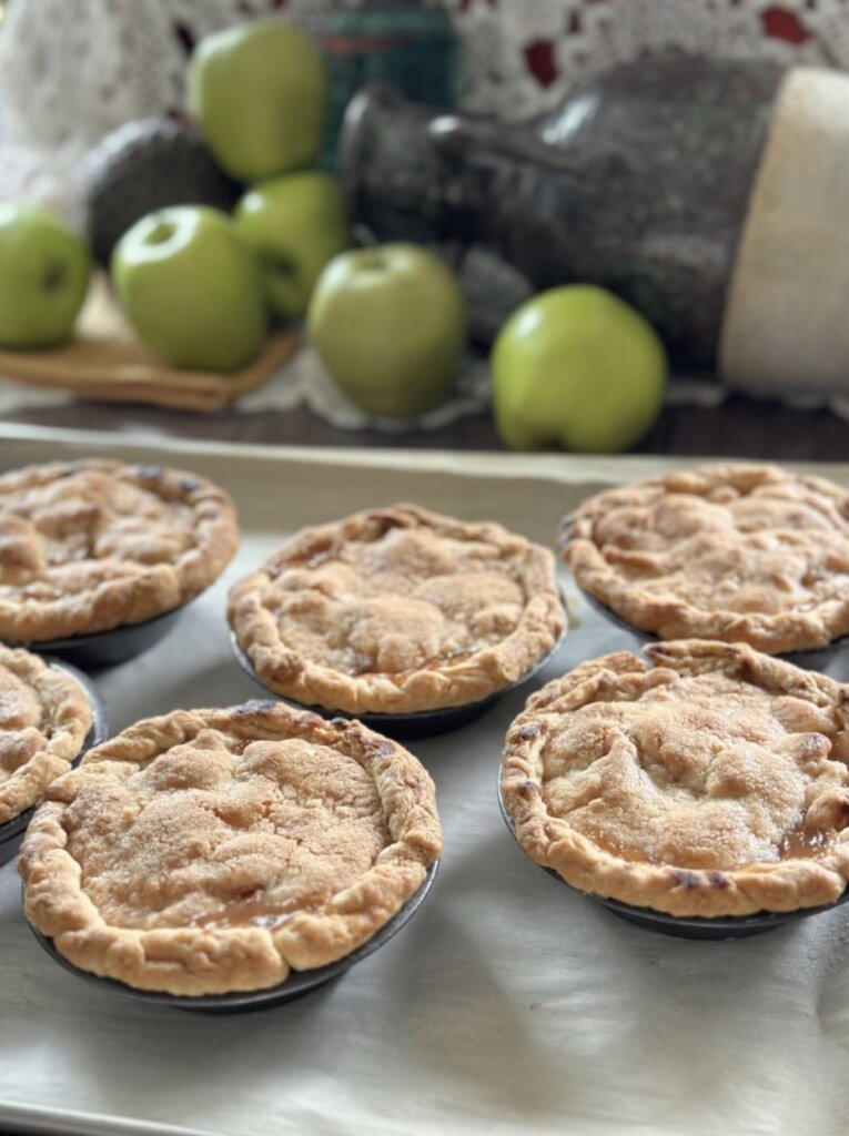 This recipe makes 2 regular pies or 8 mini pies. We love these Mini Pie Plates and use them all the time for pies, flan, panna cotta and serving desserts.
