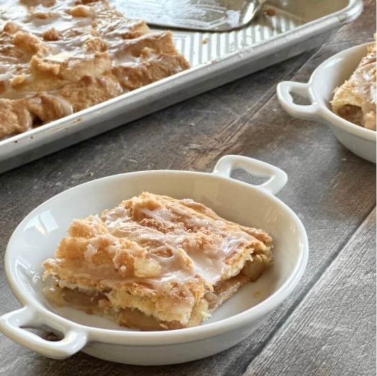 A slab pie is a great idea if you are hosting or attending a Pi Day party. Apple Pie Slices are light, flaky and delicious. This one is a MUST TRY!