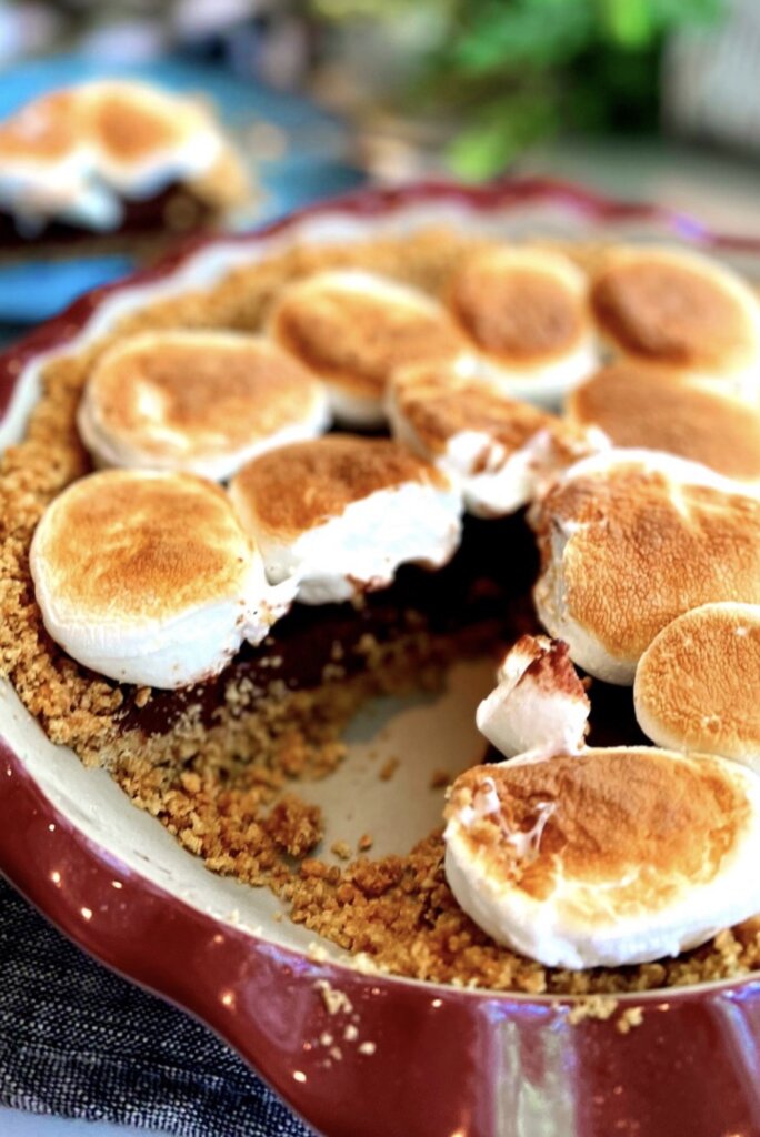 S’Mores Pie is uncommon, different and delicious! Your friends and family will love this one! The thick and creamy fudge filling in a graham cracker crust and topped with toasted marshmallows is something I love and I do not even like s’mores!