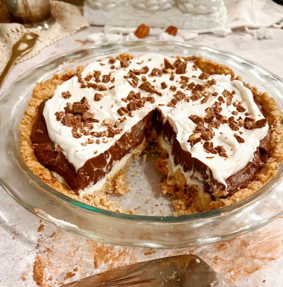 Have you ever heard of Arkansas Possum Pie? The creamy layered filling is so good, however it is the nutty crust that does it for me. Maybe it’s those two components together? It just really works for me.