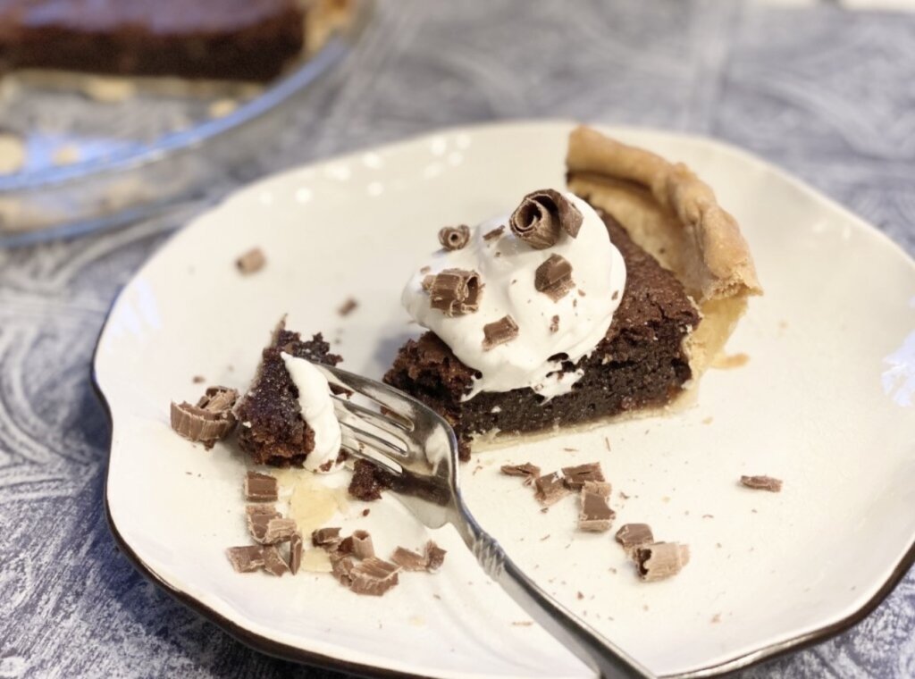 Saved the best for last! There’s gotta be at least one chocolate pie on the table and this one is THE BEST! Chocolate Chess Pie is a favorite around here. Sometimes I make it just because. For no reason at all. It is SO yummy! We see Chess Pie often, but hardly ever see CHOCOLATE Chess Pie. And in my opinion, this is the BEST Chocolate Pie that exists.