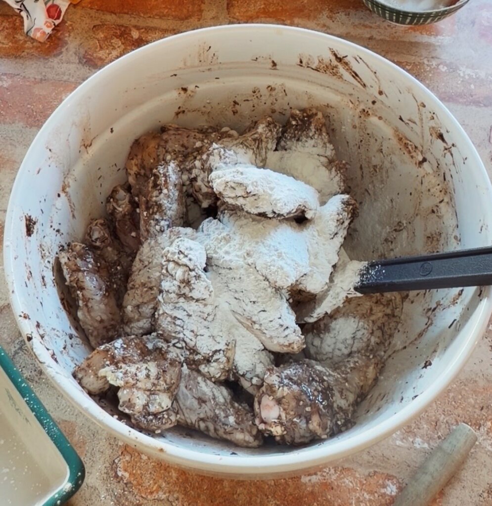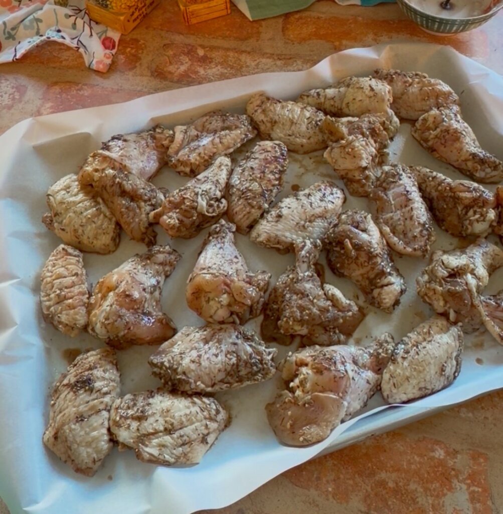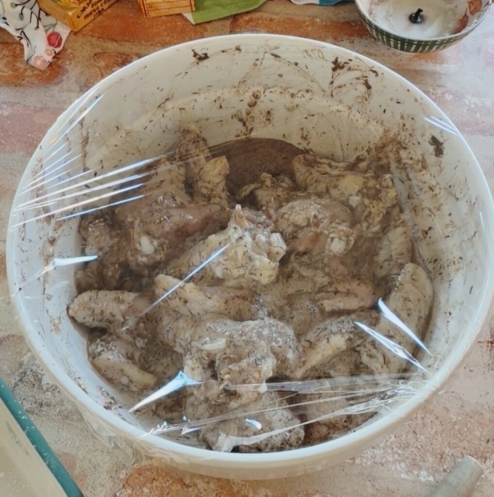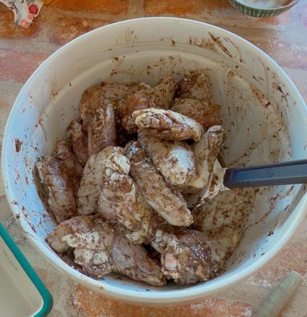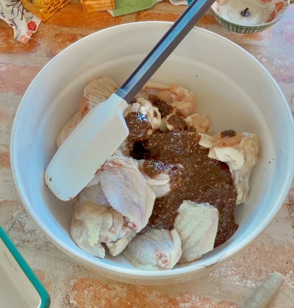 Pour the marinade over the thawed chicken wings. Mix well until all are covered evenly.
