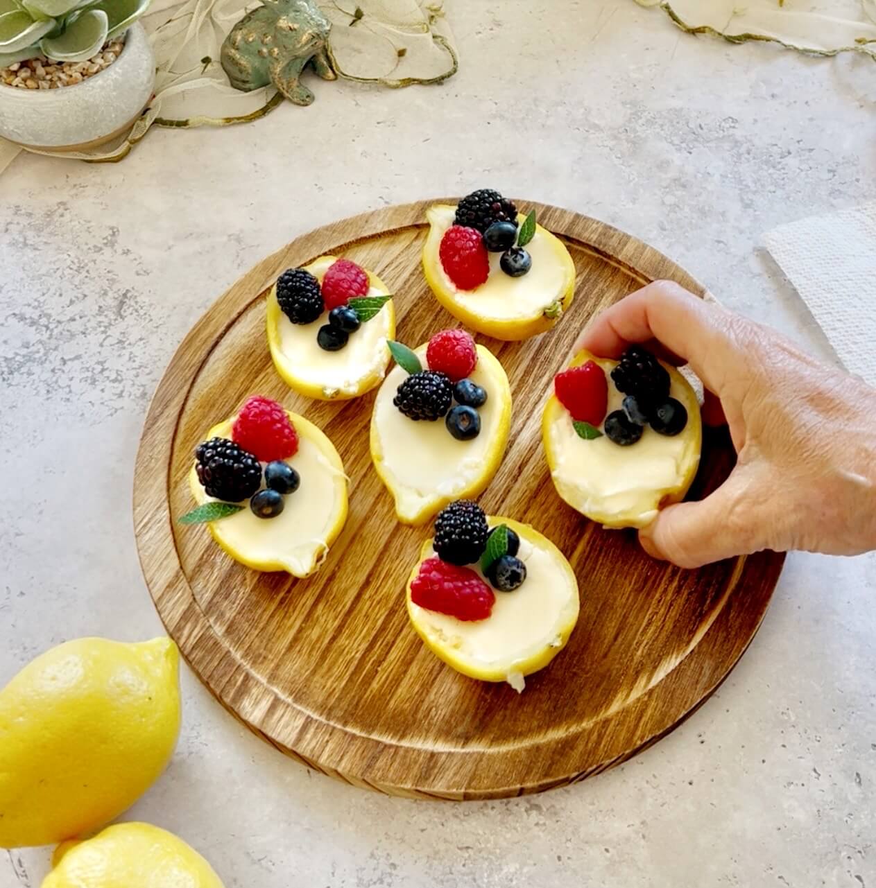 - Garnish with berries and mint leaves.
