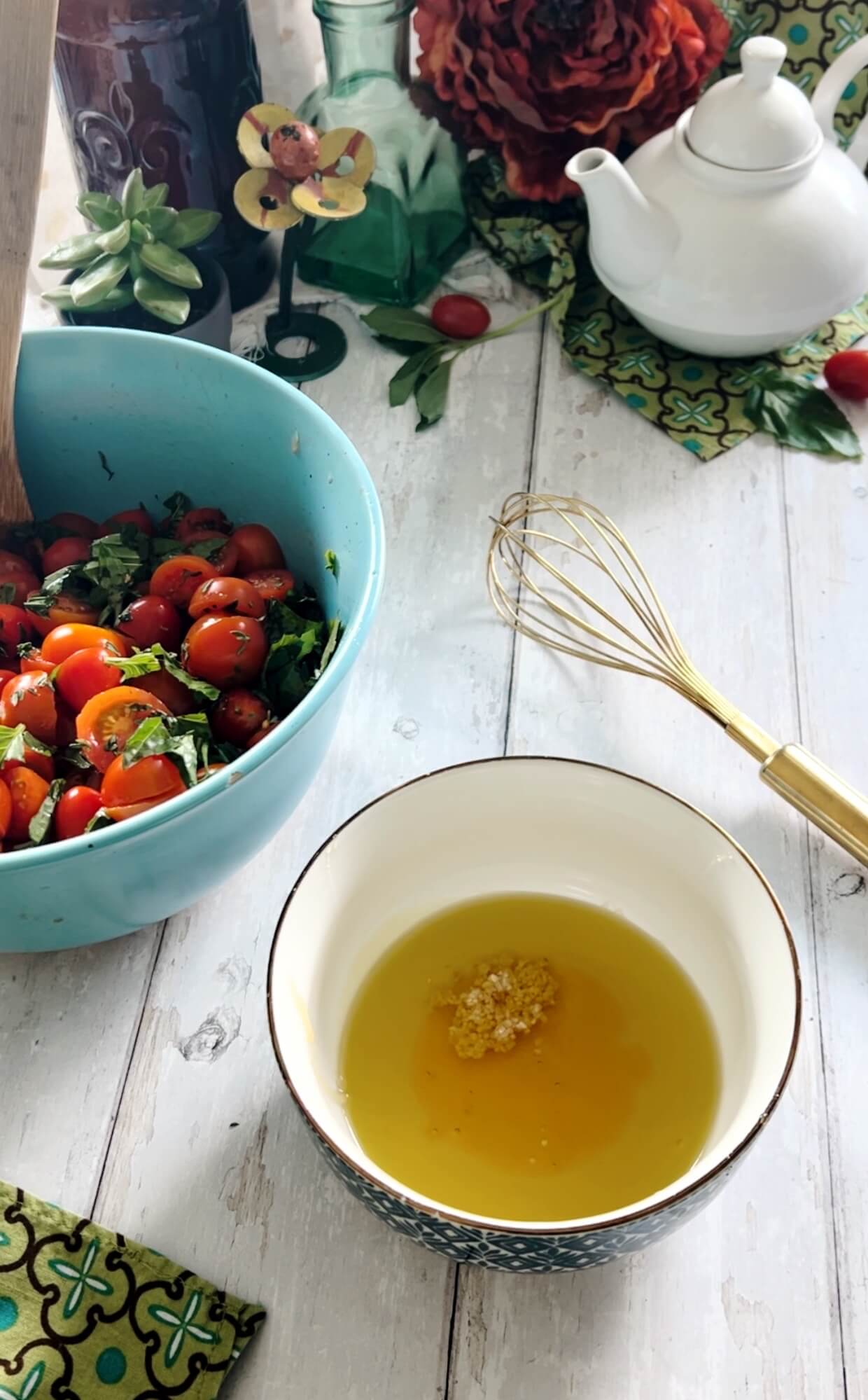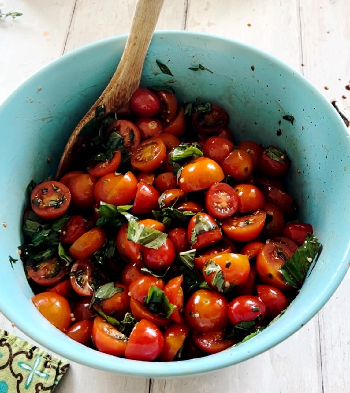 - Mix together all marinade ingredients and pour over tomatoes. Mix well, cover and refrigerate until ready to serve.