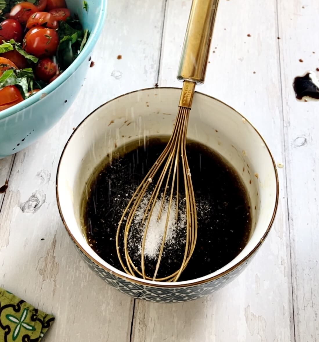 Mix together the olive oil, vinegar, honey, garlic s&p and chili flakes.