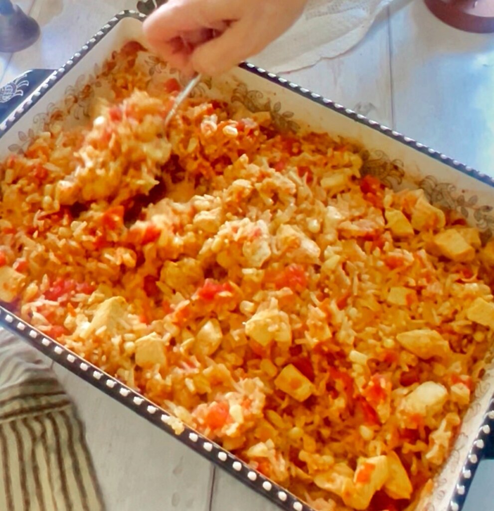 Rice Casserole was a standard dinner at my house as a kid. It was a welcome and cozy dinner on a chilly school night. For this I used chicken breast instead of hamburger and went to Mexico for the flavor.