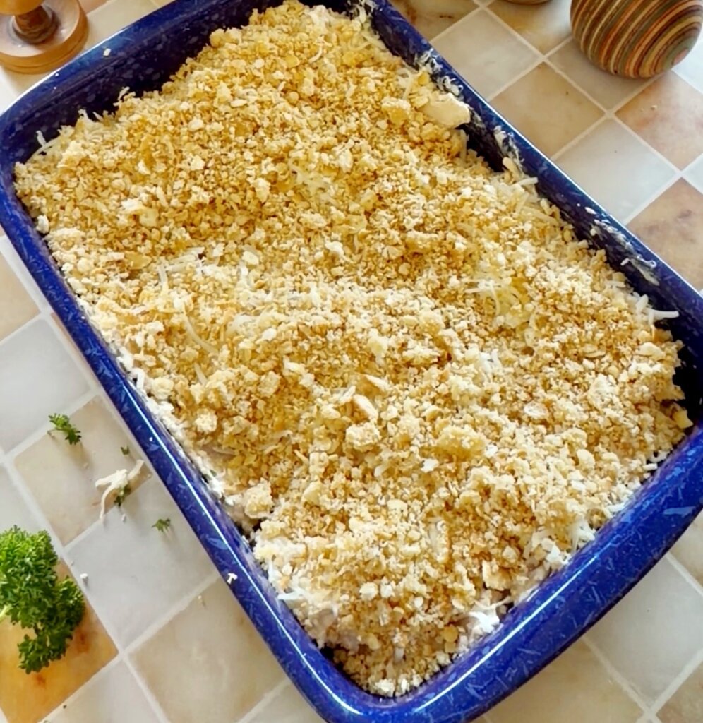 Creamy cheesy chicken topped with a crunchy cracker topping. So good. @mostdeliciouslife.com