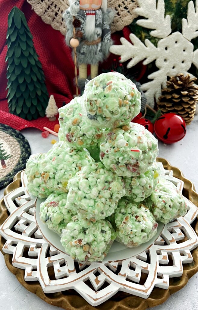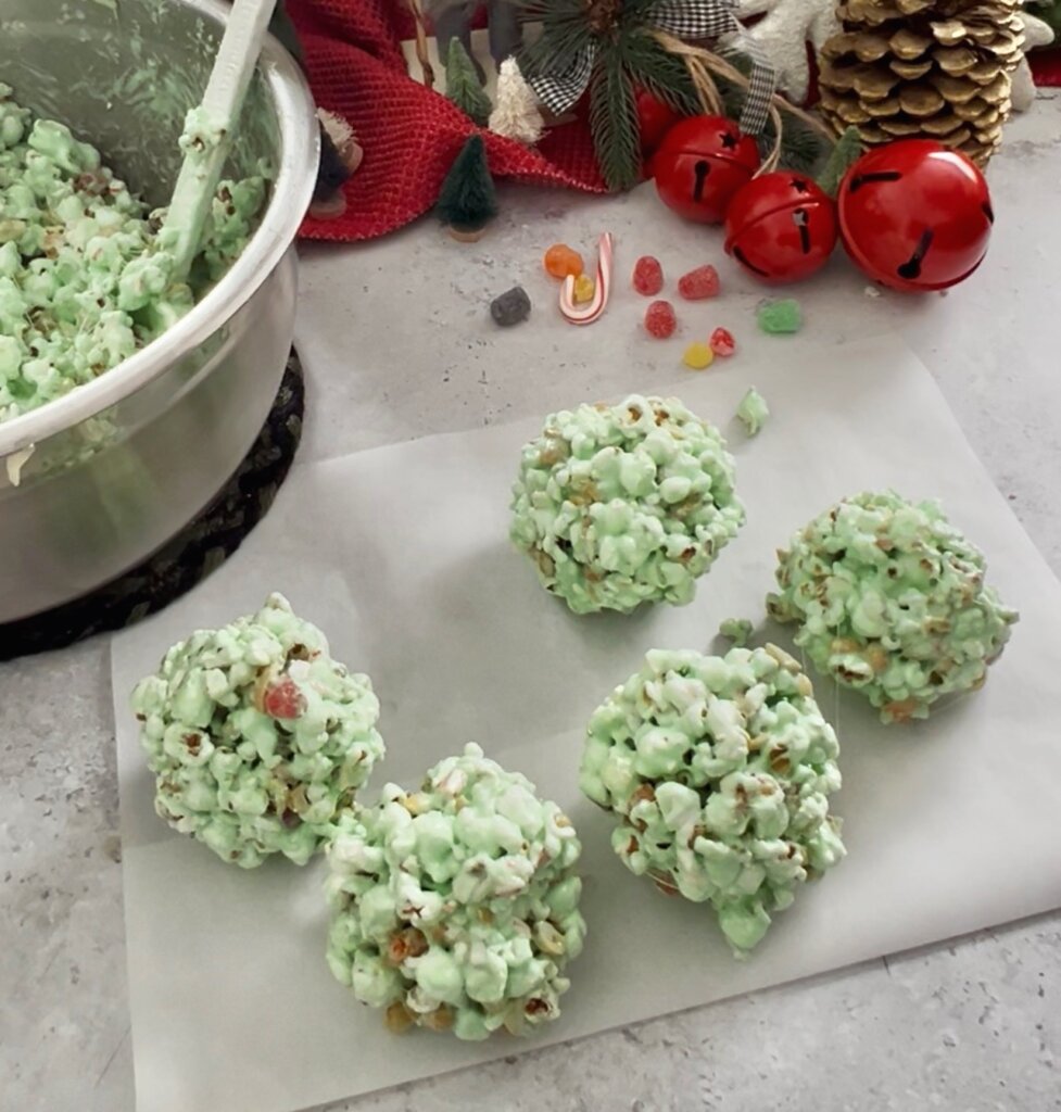 These wonderful popcorn balls showed up in my kids’ stockings every Christmas Eve for years. They are a magical part of Christmas at our house. I found the recipe for “popcorn cake” in the early ’80s but I like them better in balls.