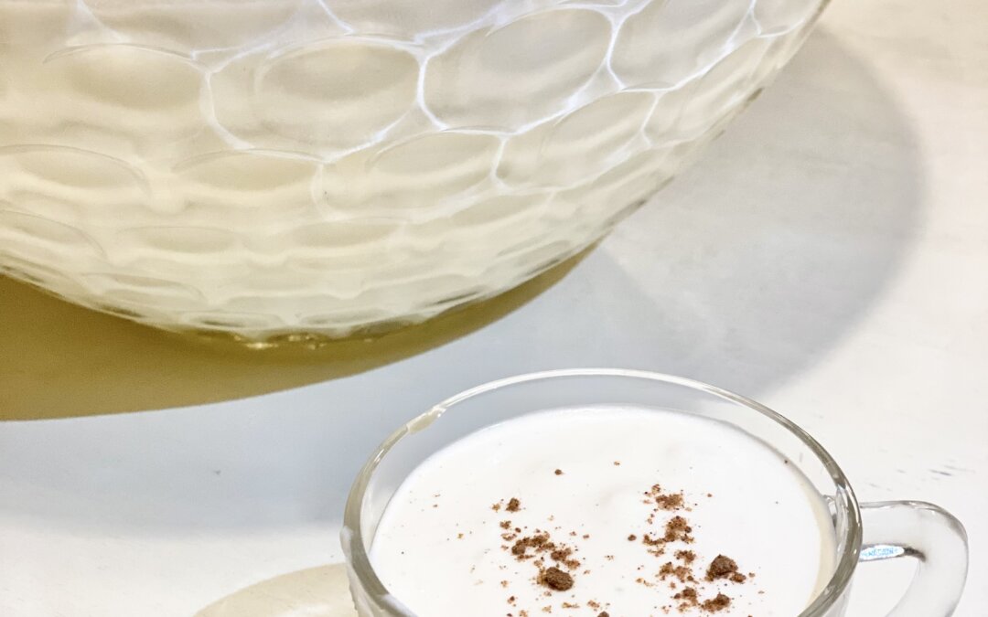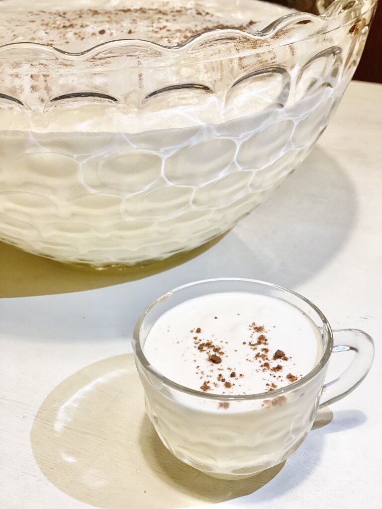 I LOVE all of the old photos of my kids making eggnog mustaches. I love this recipe is non-alcoholic and very safe to serve at a multigenerational family or friend gathering.