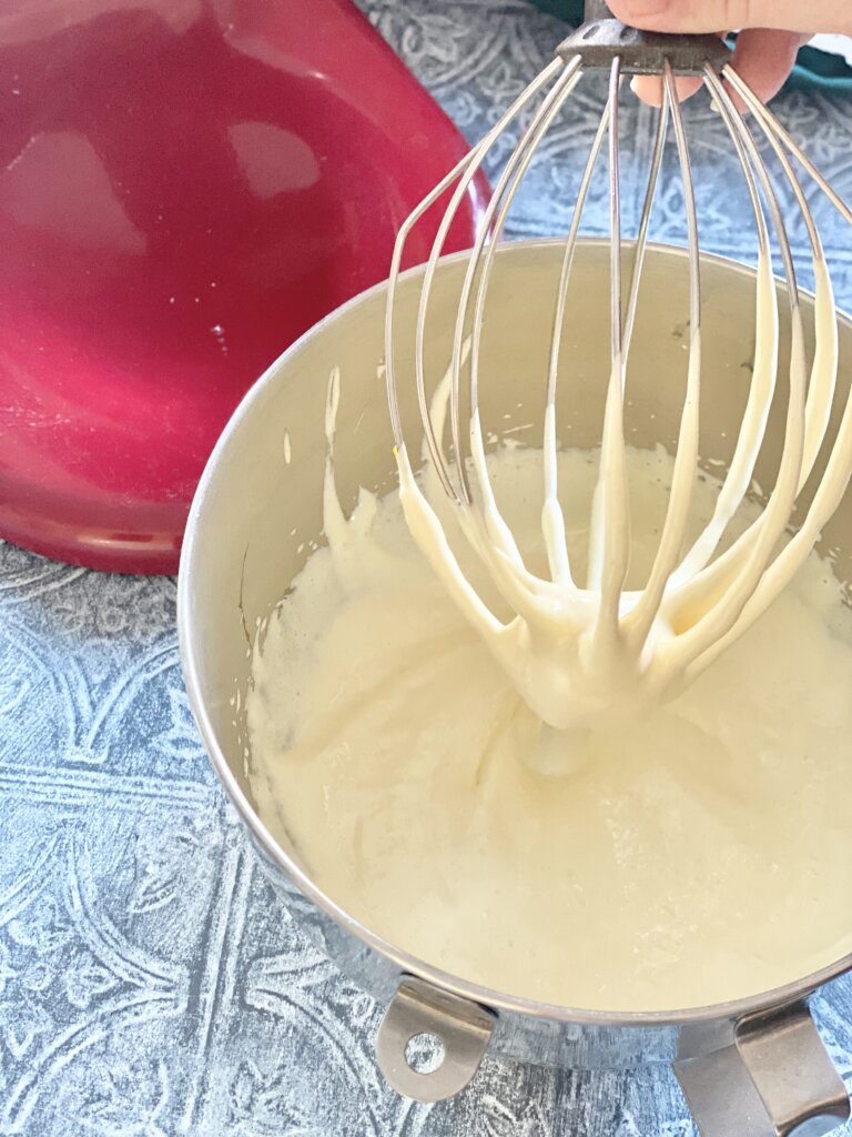 Start by separating the egg yolks from the whites. Set the whites aside for now. They will come later. This can be done with an electric hand mixer, but it is SO much easier with the whisk attachment of a stand mixer.