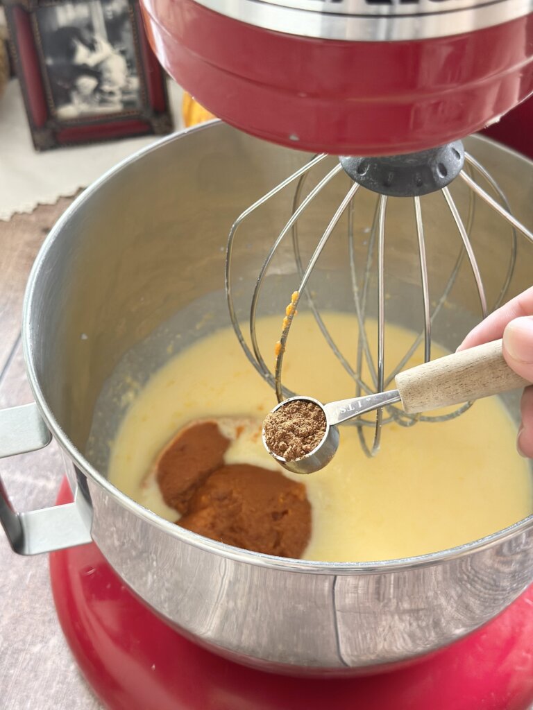 - Lightly whisk together the milk and pudding packets. Add the pumpkin puree and pumpkin spice. Using an electric mixer, whip together for a minute till thick and creamy.