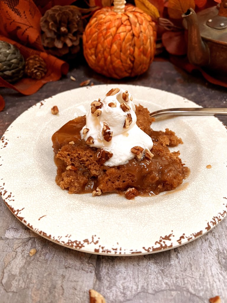 This cake is SO good and perfect for Thanksgiving! Through in the ingredients into your slow cooker and it will be hot and ready for dessert without any extra effort from you. Definitely try out Crockpot Gingerbread Pudding Cake!