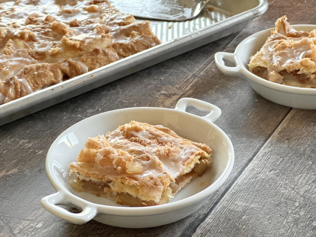 My mother in law would always make Apple Pie Slices for Thanksgiving. It kind of is a pie, but not a traditional one, so I am sneaking it in here. It is a large slab pie. Big family tradition for us.