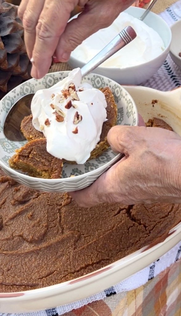 Pumpkin Custard Cake is one of my absolute favs. My birthday is in October and growing up, I often requested this as my birthday cake. It has a pumpkin custard layer through the center with a cake crust on the bottom and a crumble top.