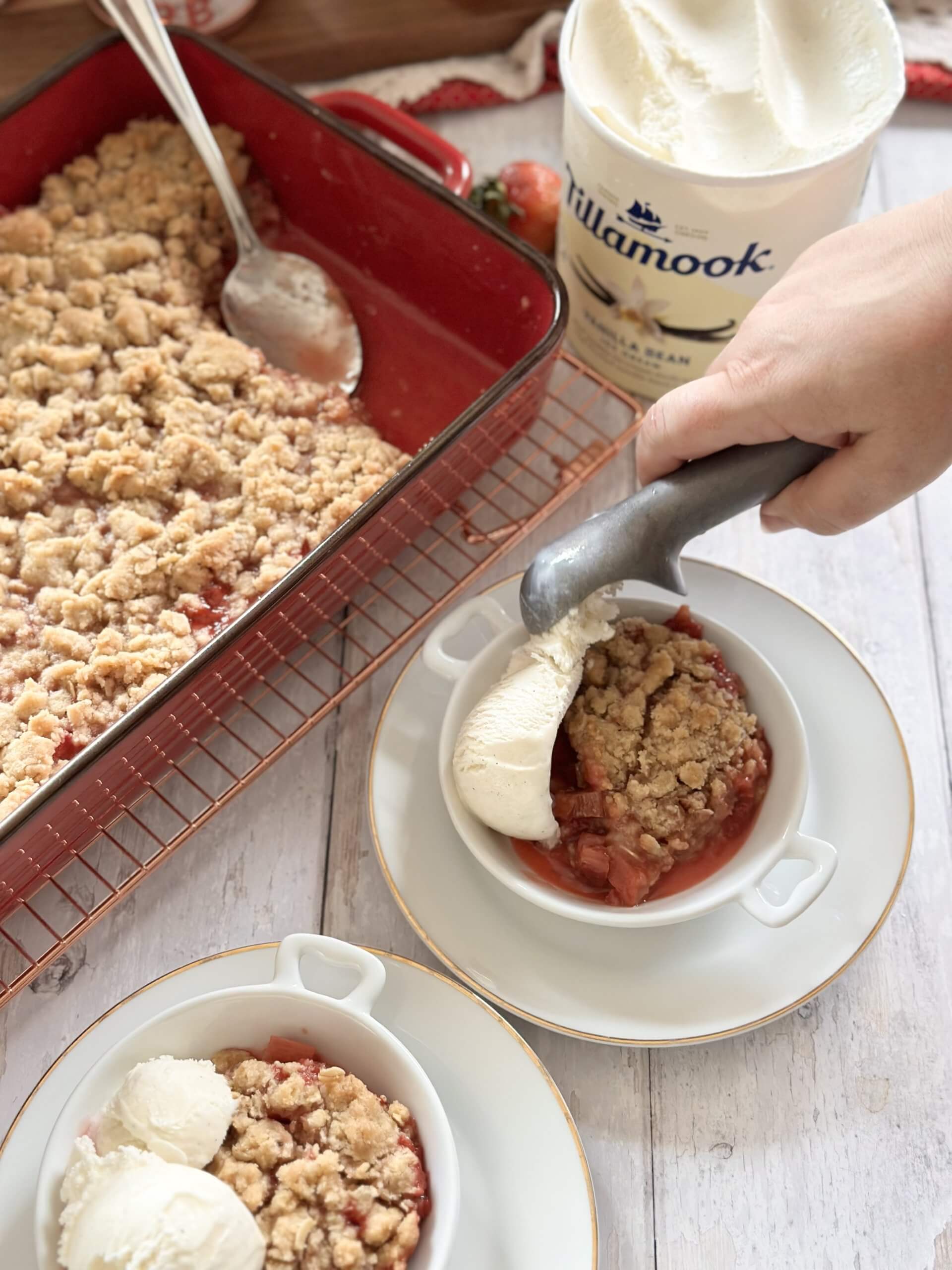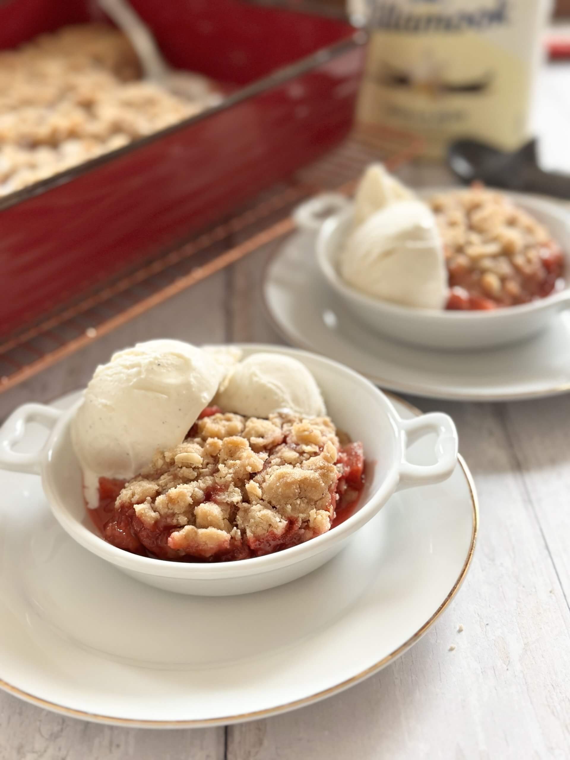If you are not a fan of rhubarb we suggest trying this recipe. The strawberries and crumb topping help cut the tartness of the rhubarb.