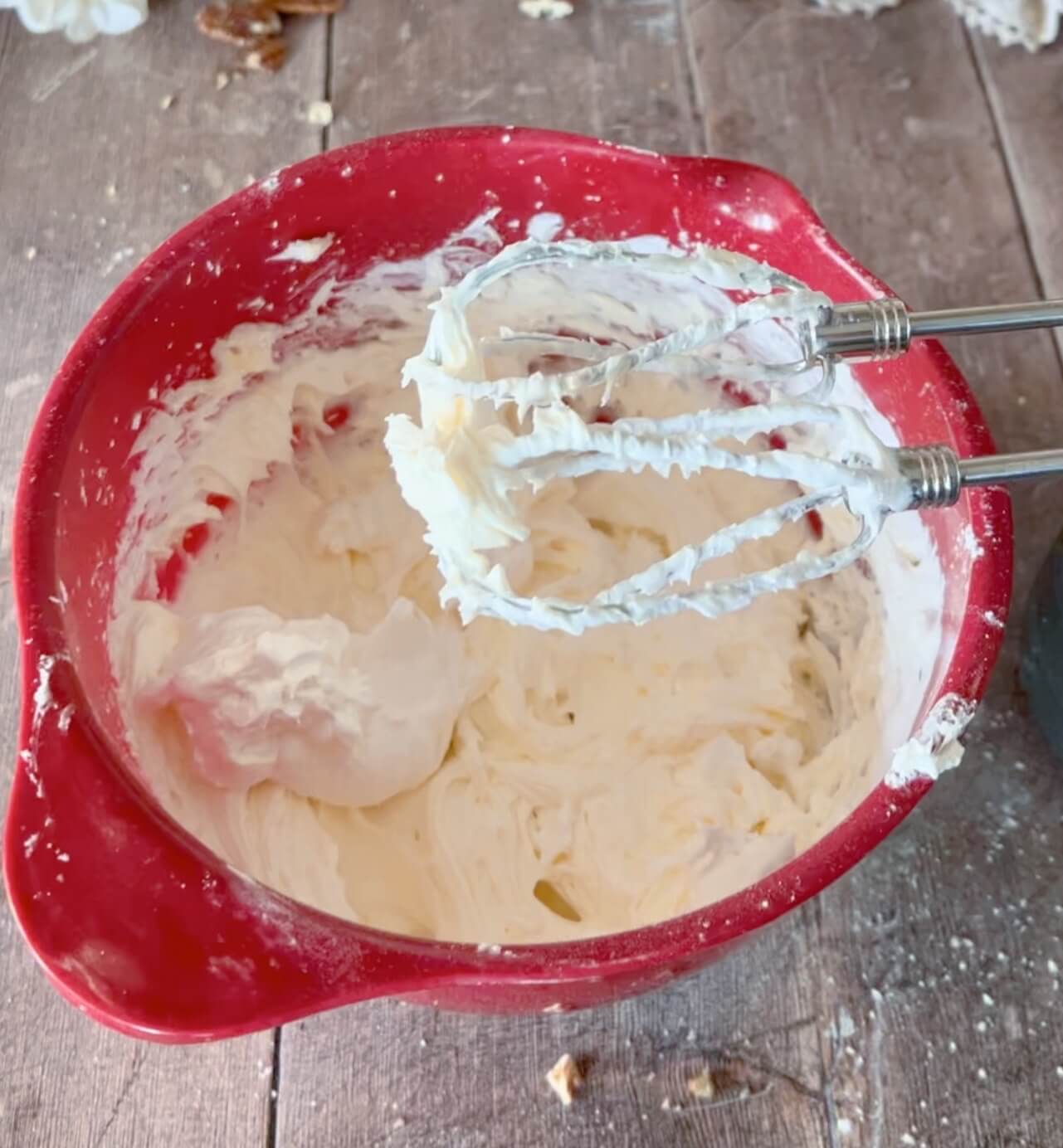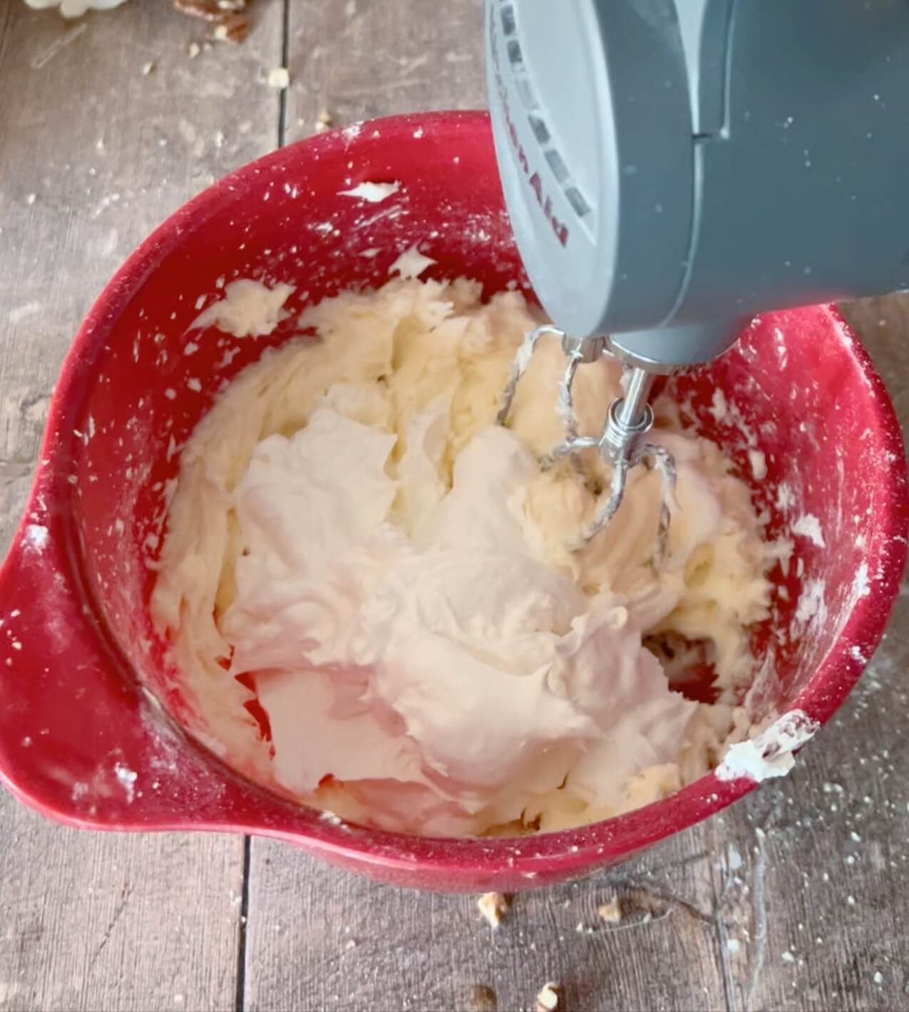 Do this by adding little cream cheese to the mixture to give the whipped cream more body and staying power.